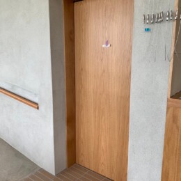 コンクリートの建物に木目の家具や建具が絶妙にマッチしています。